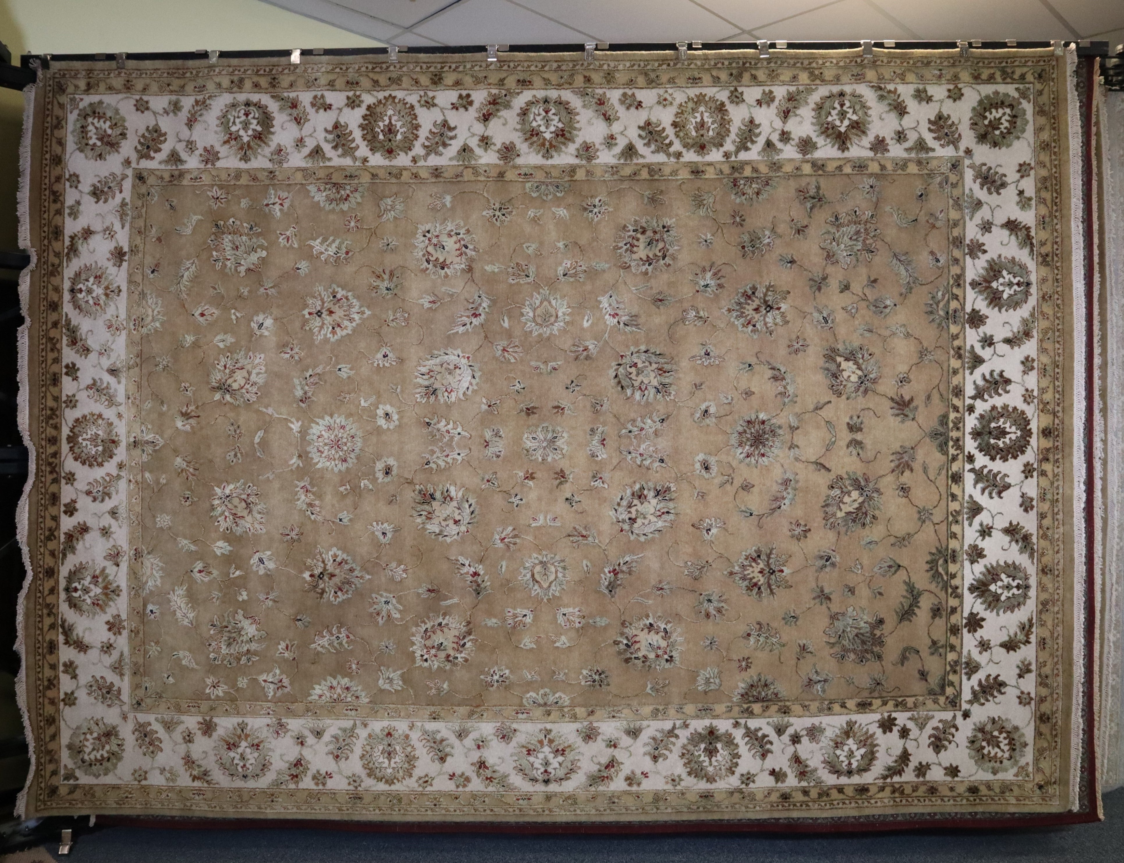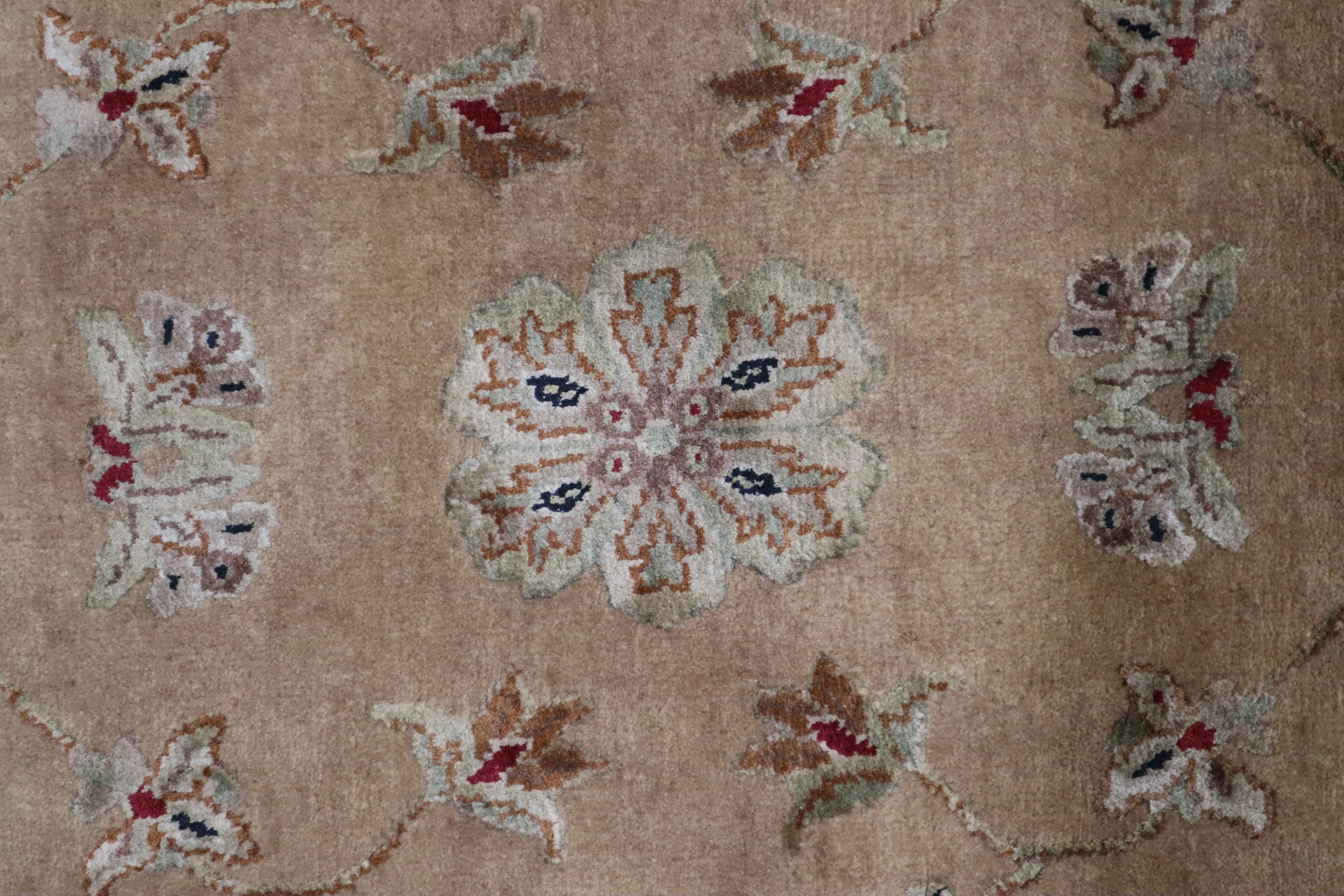 This beautiful hand-knotted rug is made with 100% lambs wool and silk.