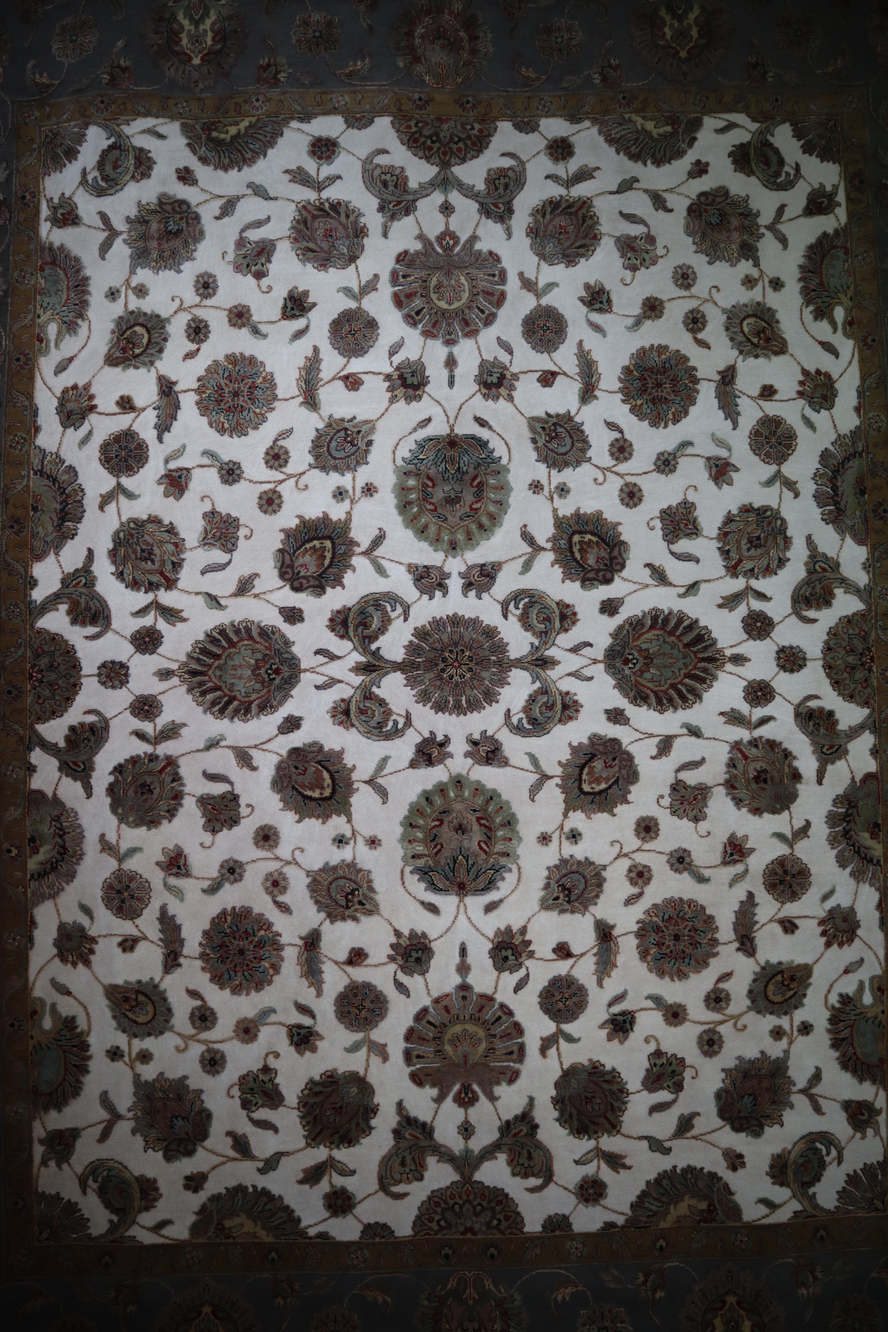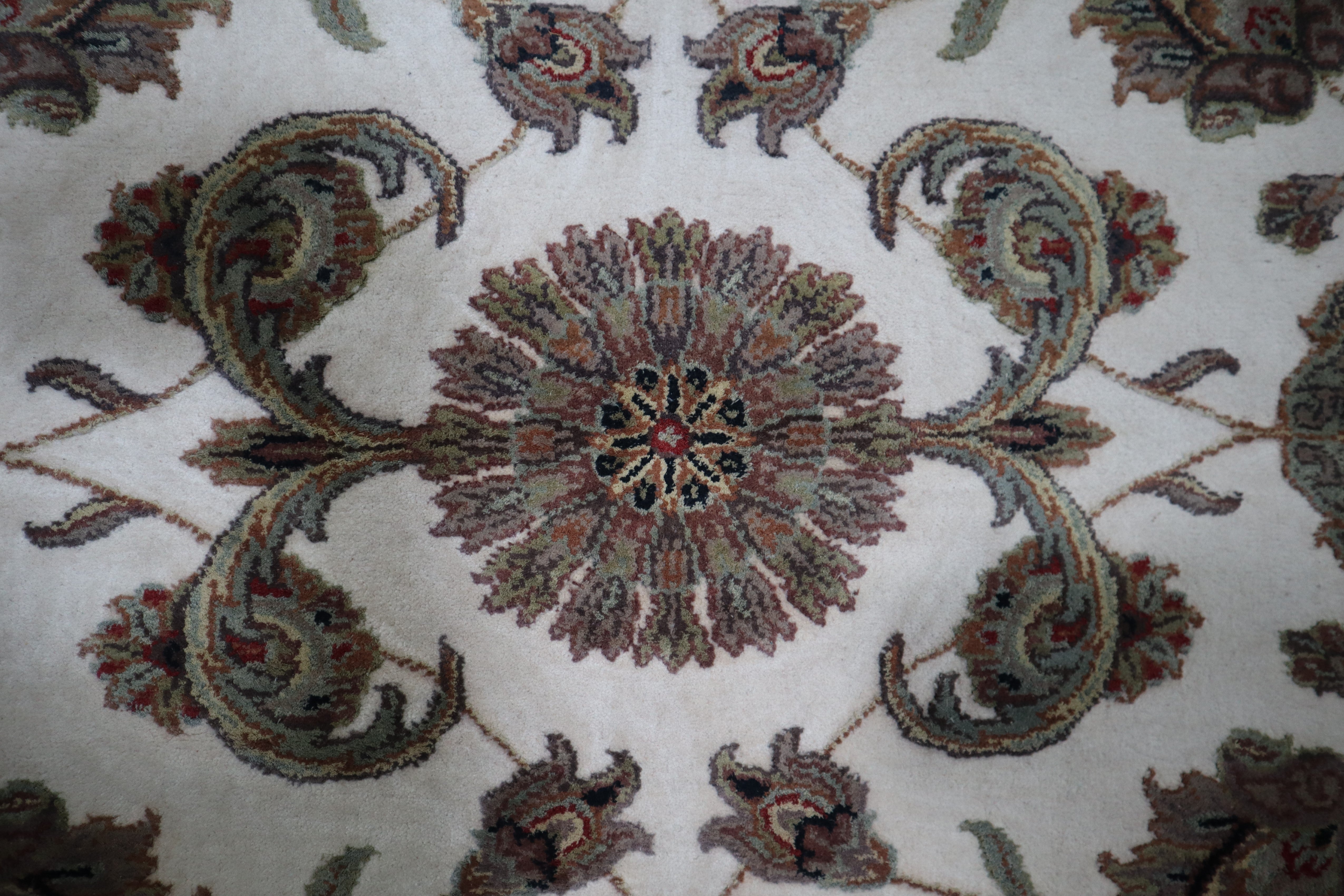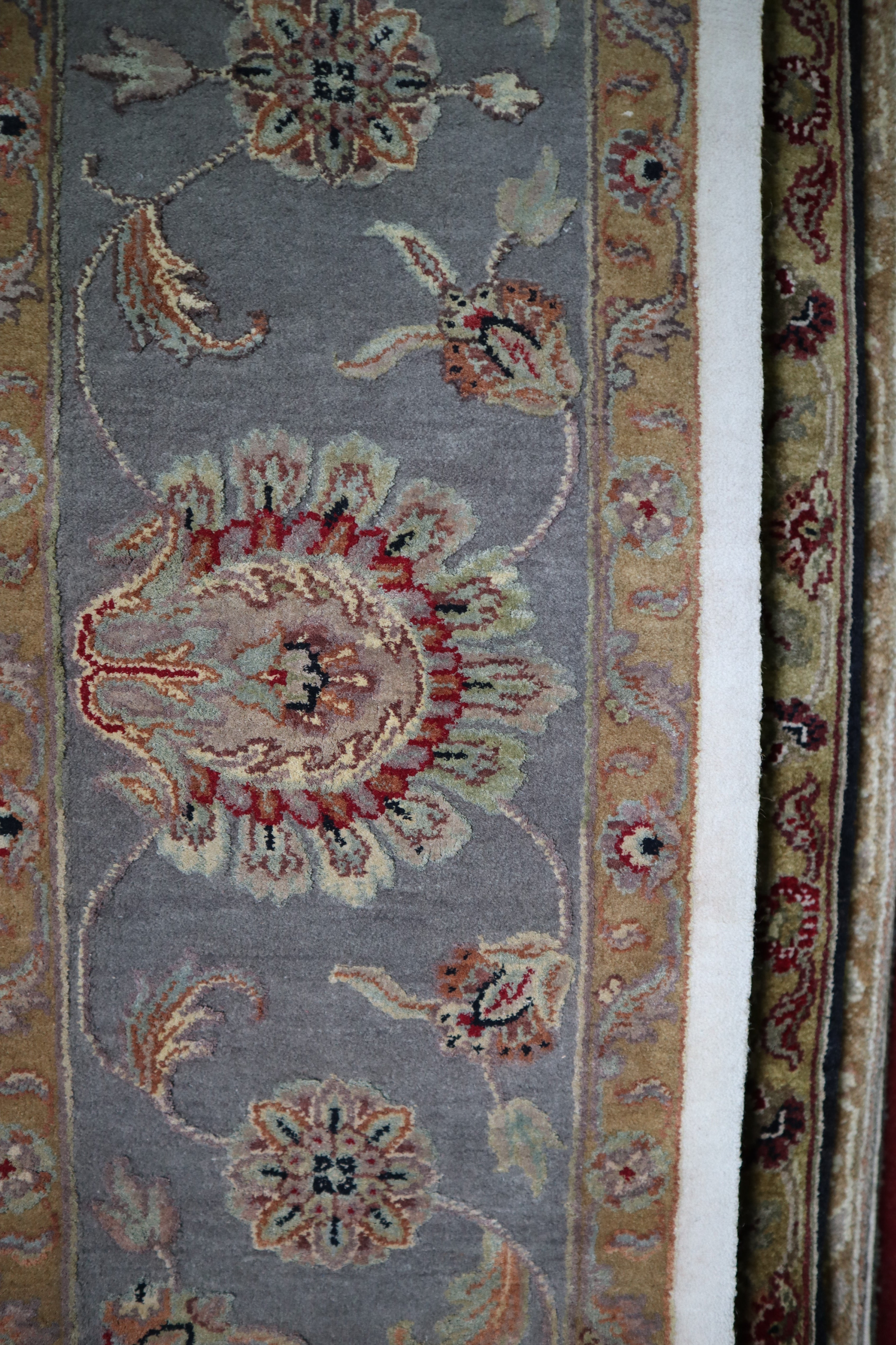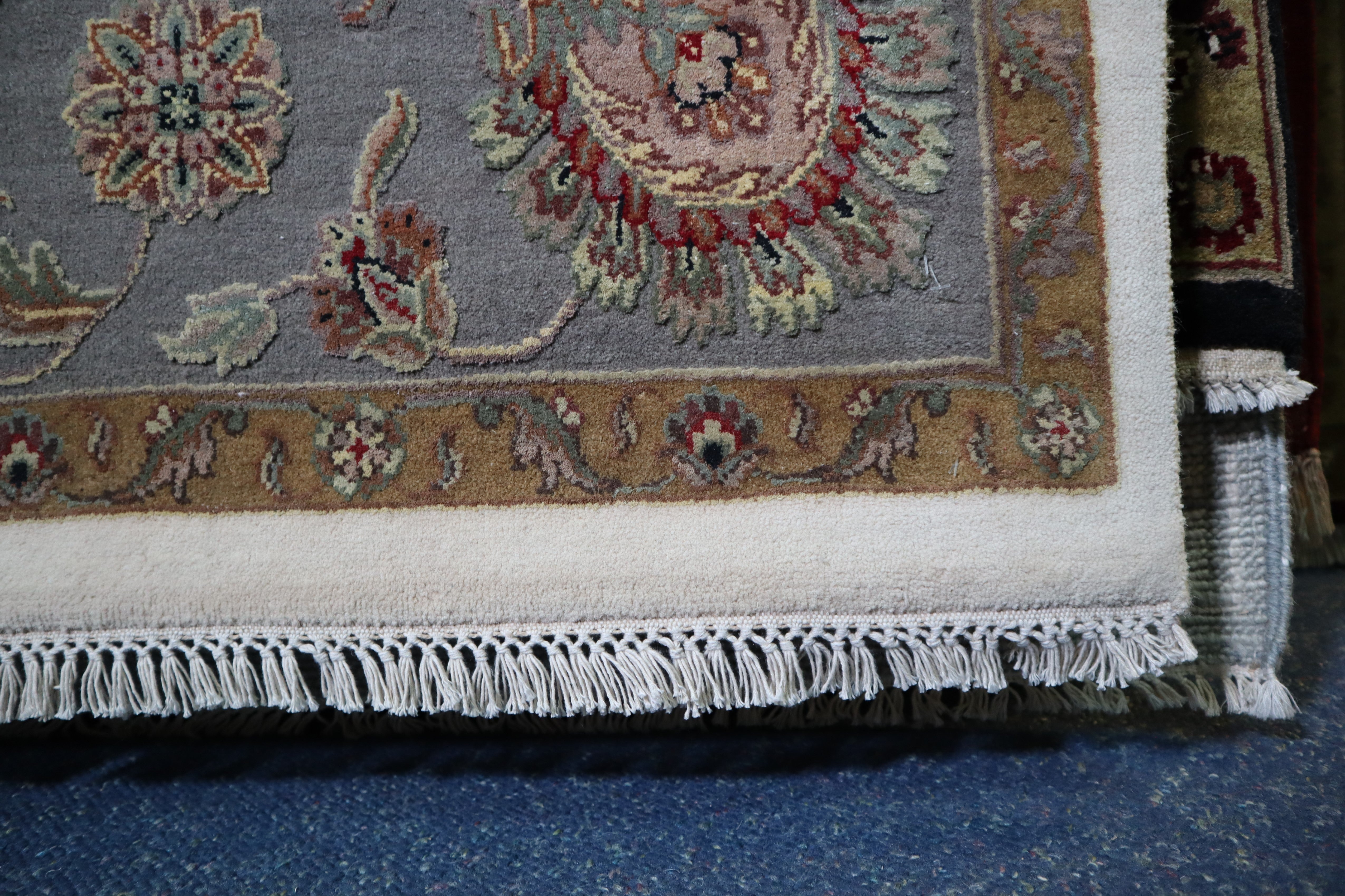 This beautiful hand-knotted rug is made with wool and silk.