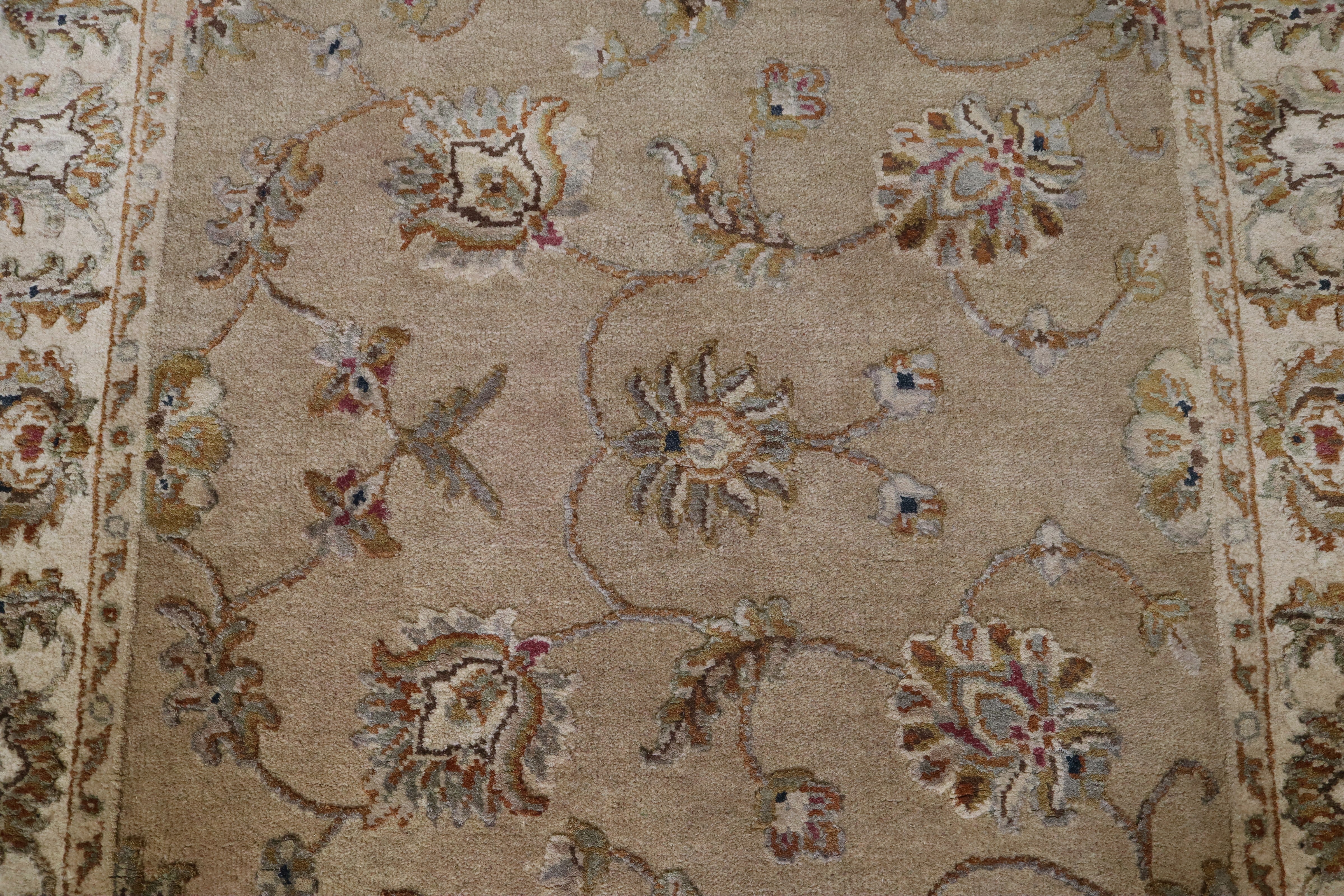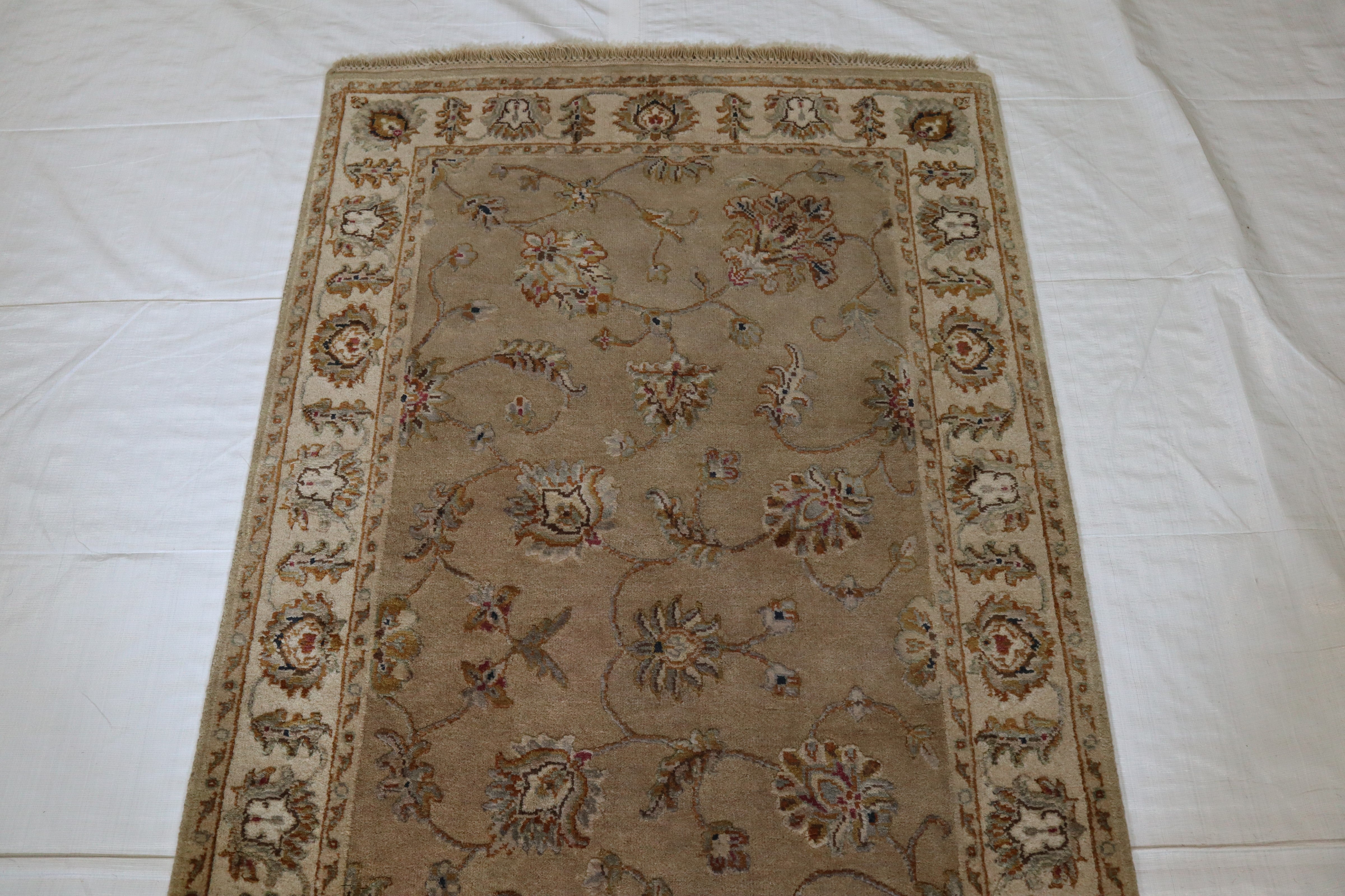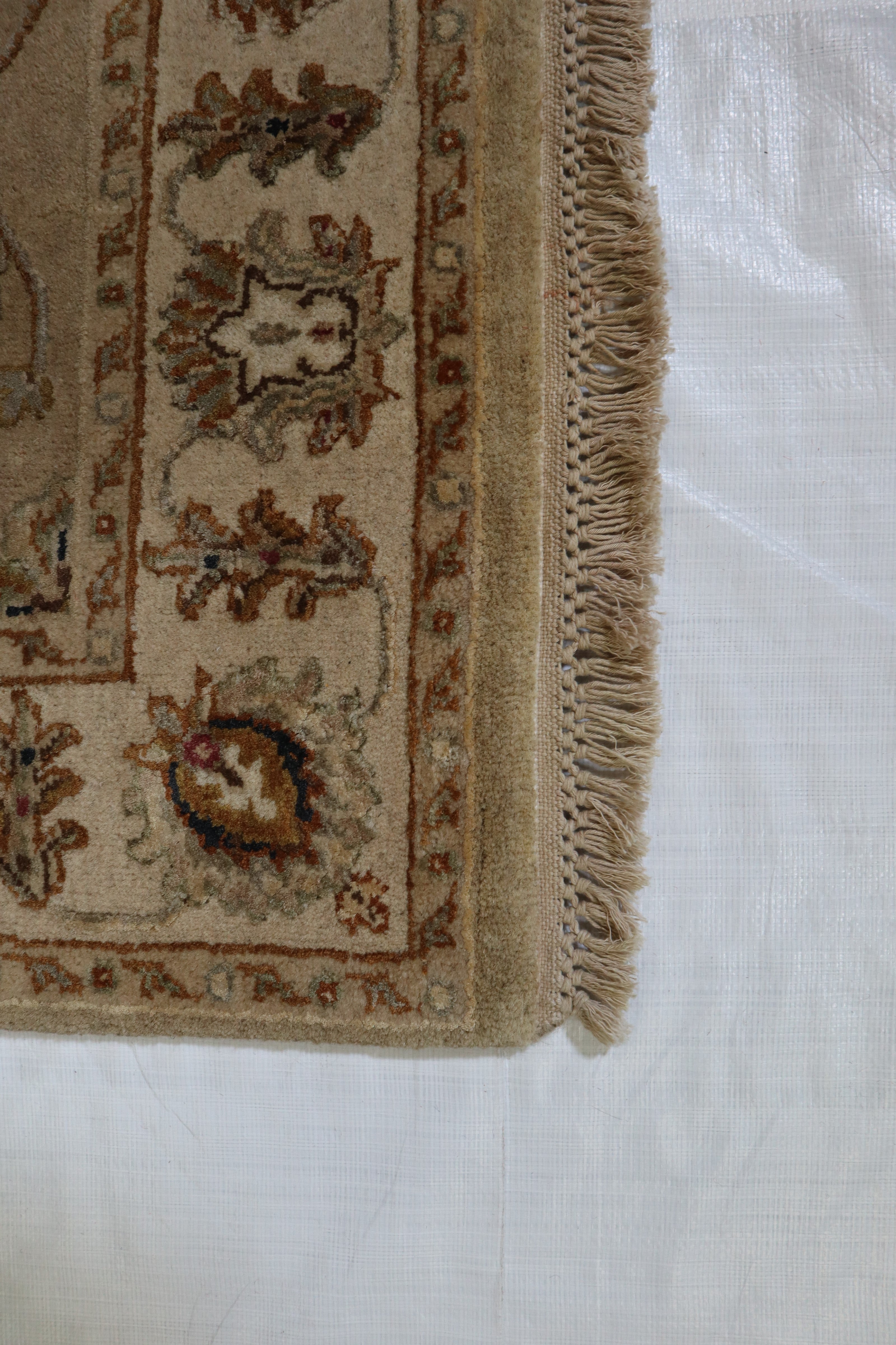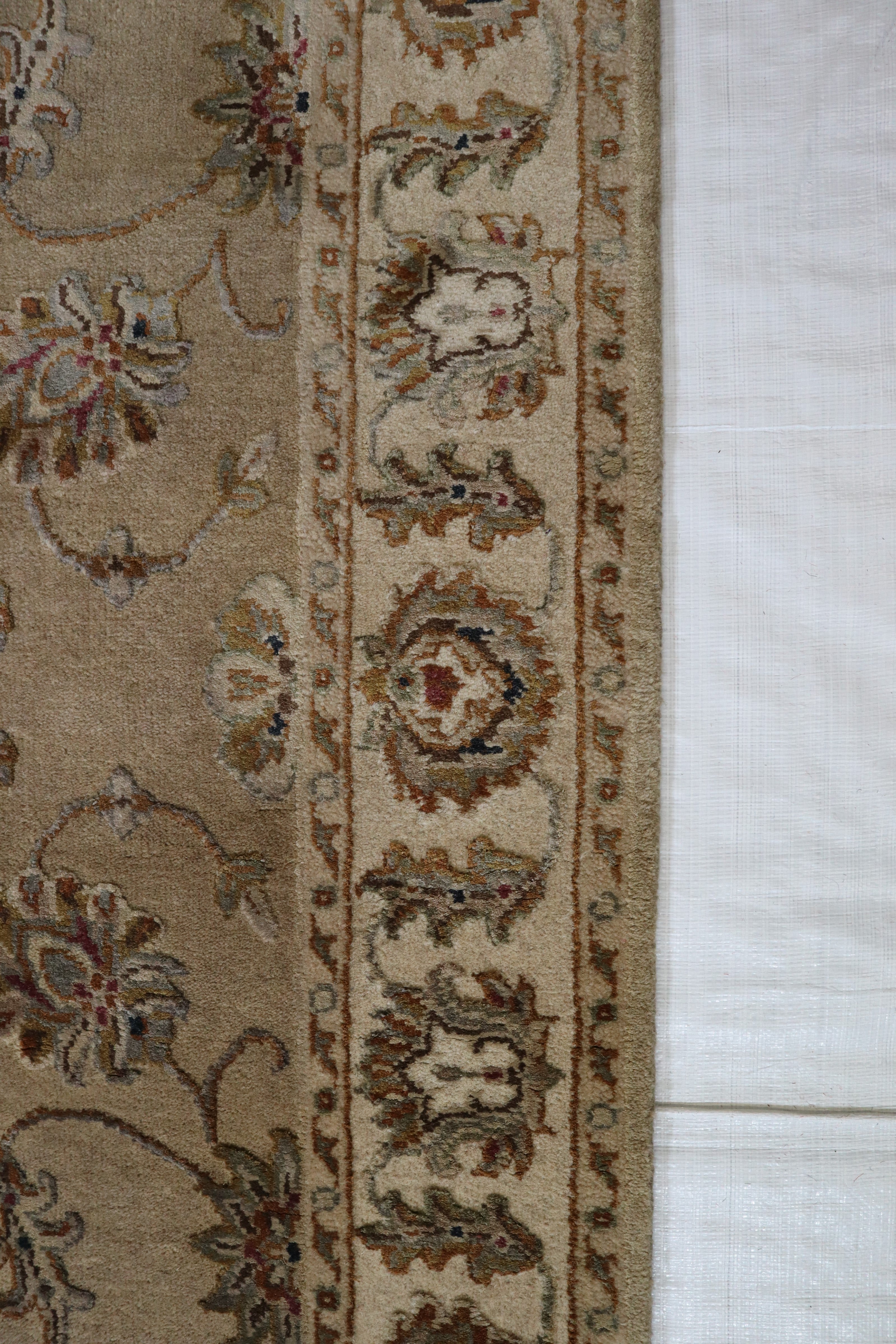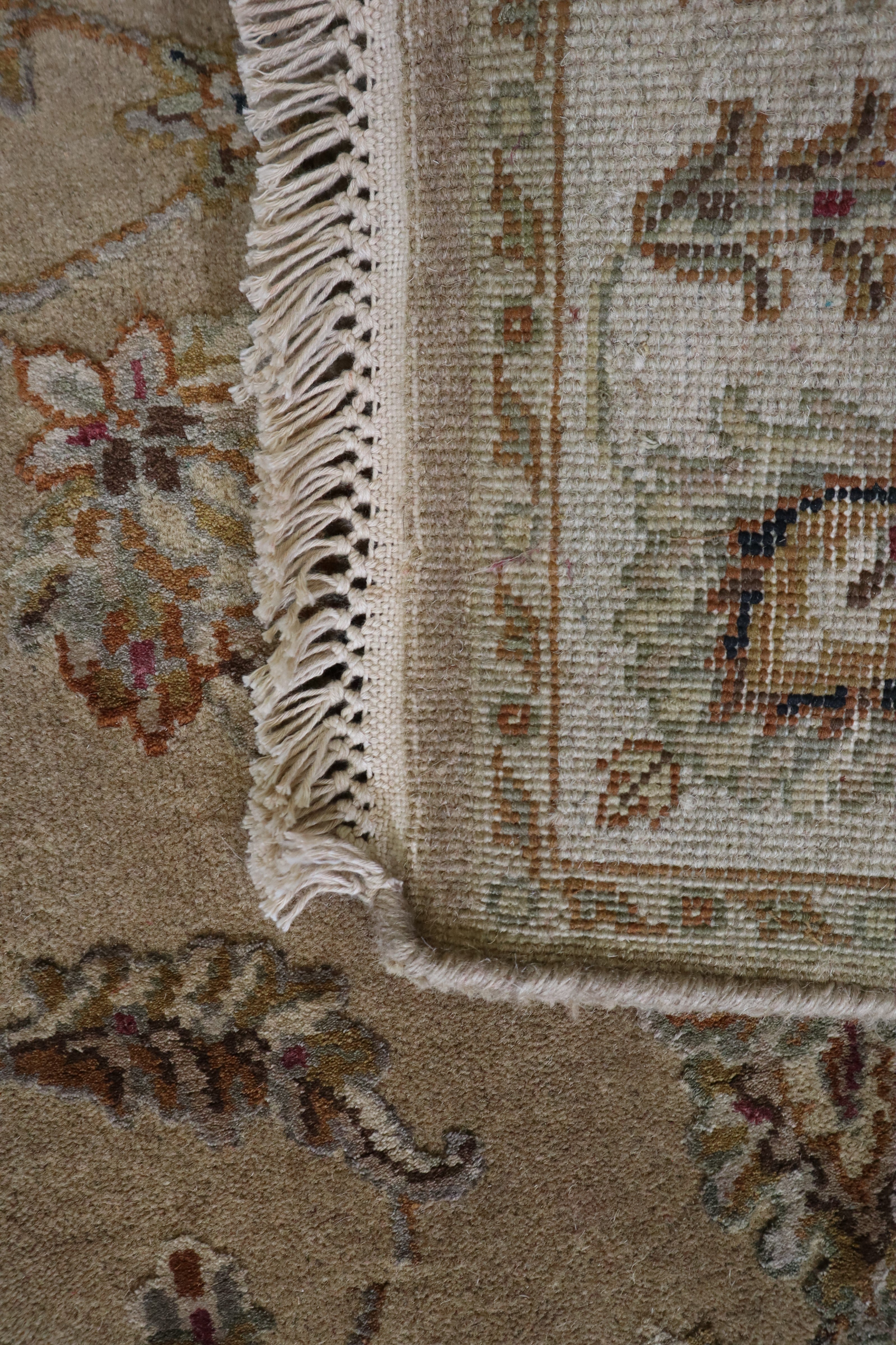 This beautiful hand-knotted rug is made with 100% wool and silk.