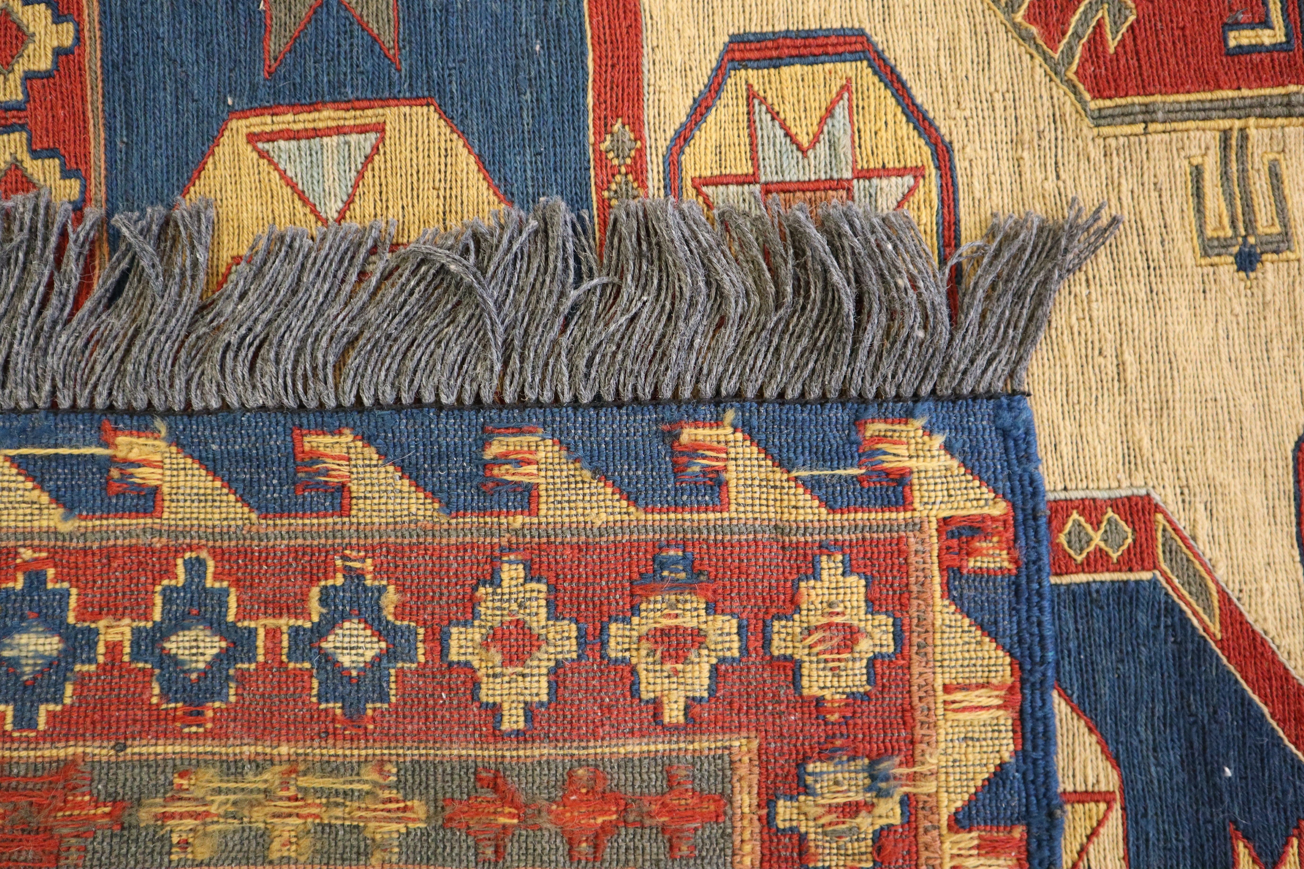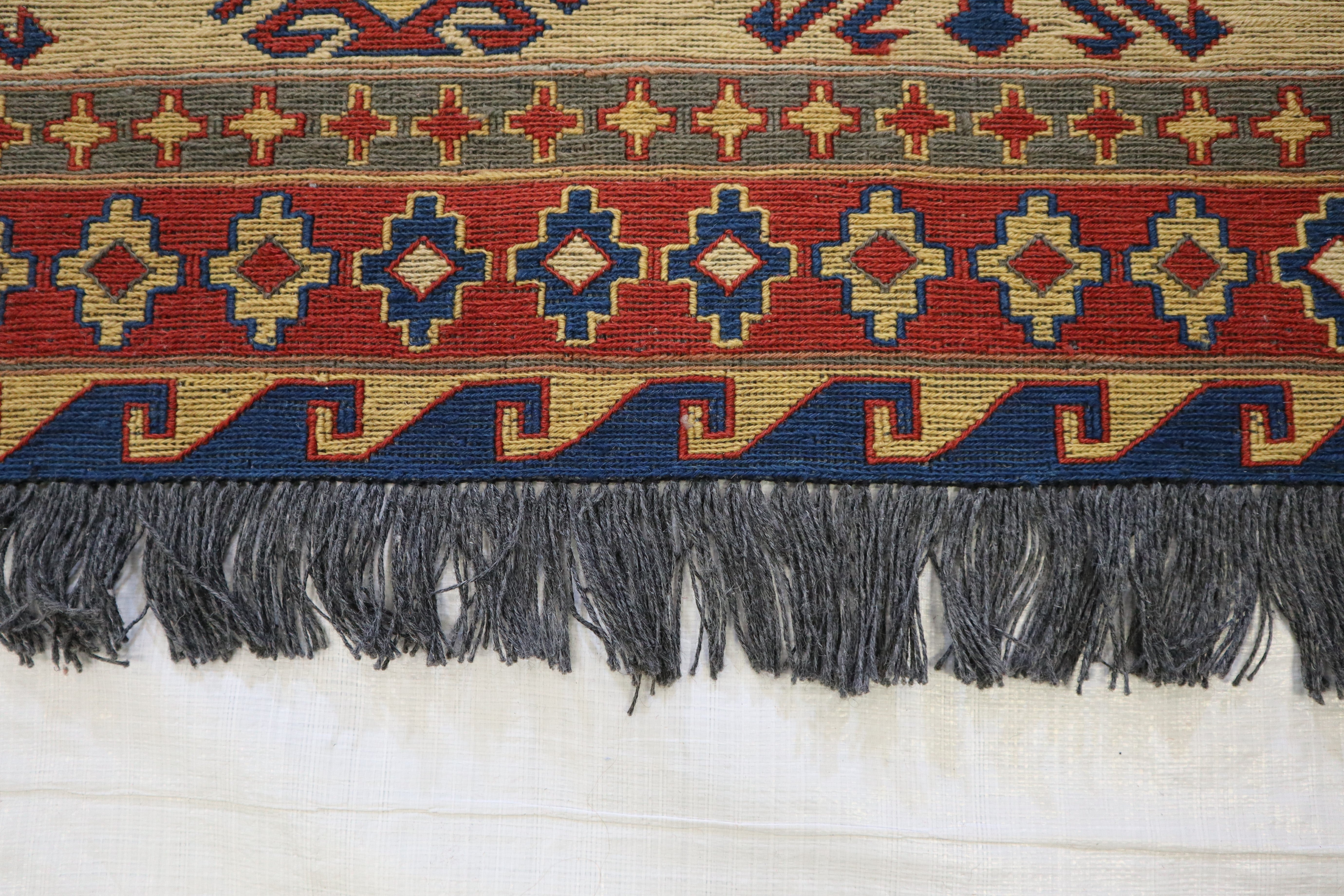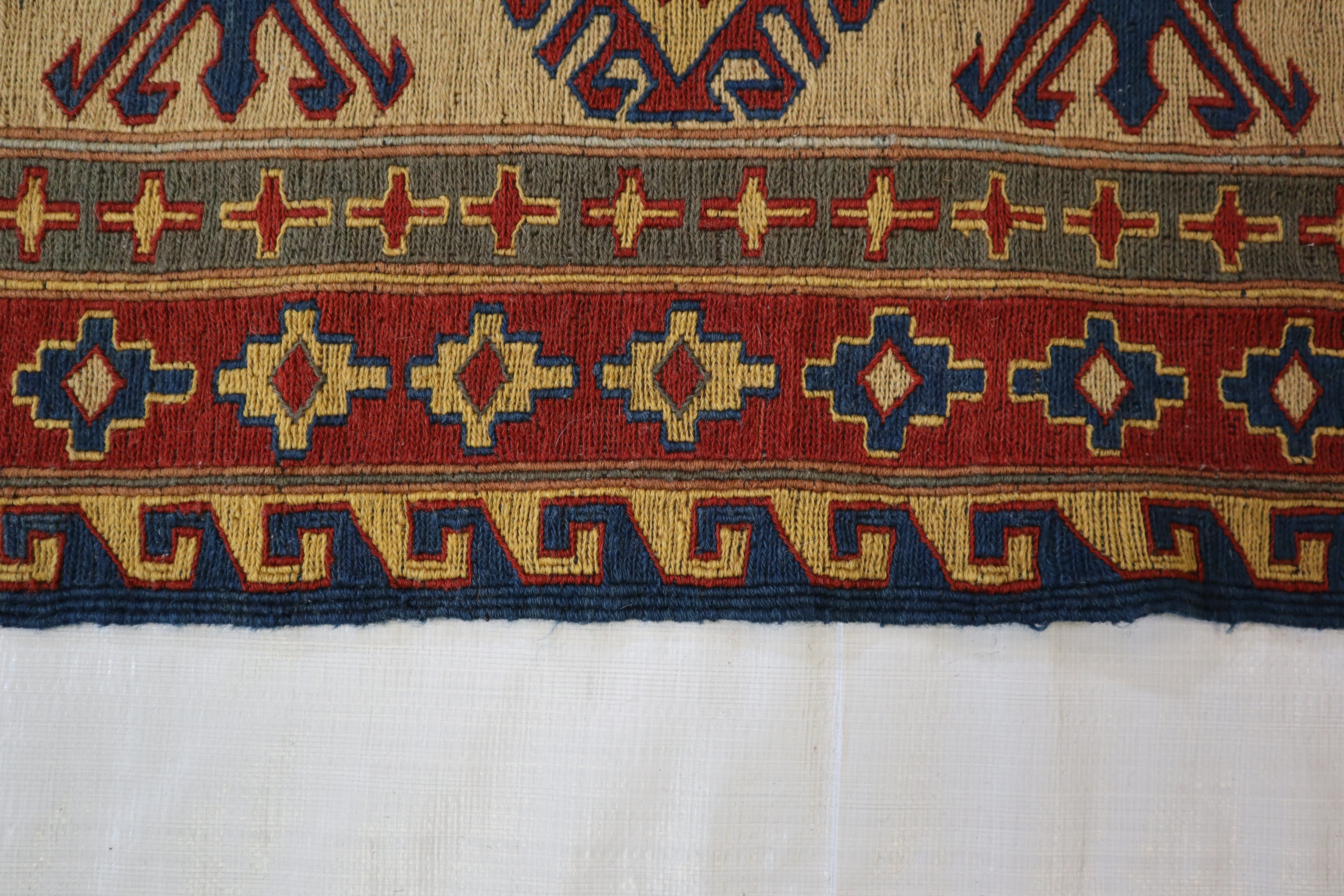 This rug is in an excellent condition. Nice colors and patterning. Very natural wool and super colors.