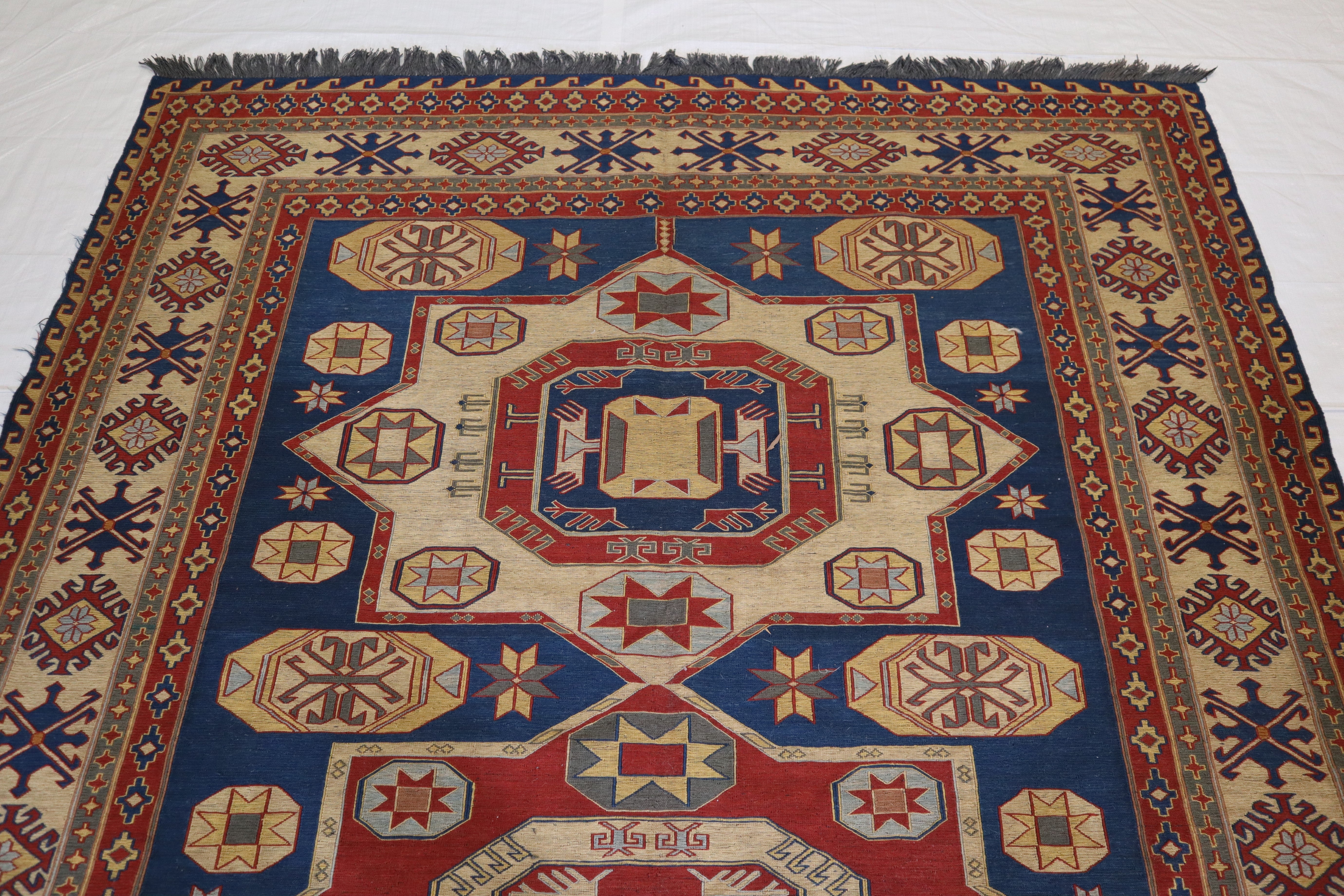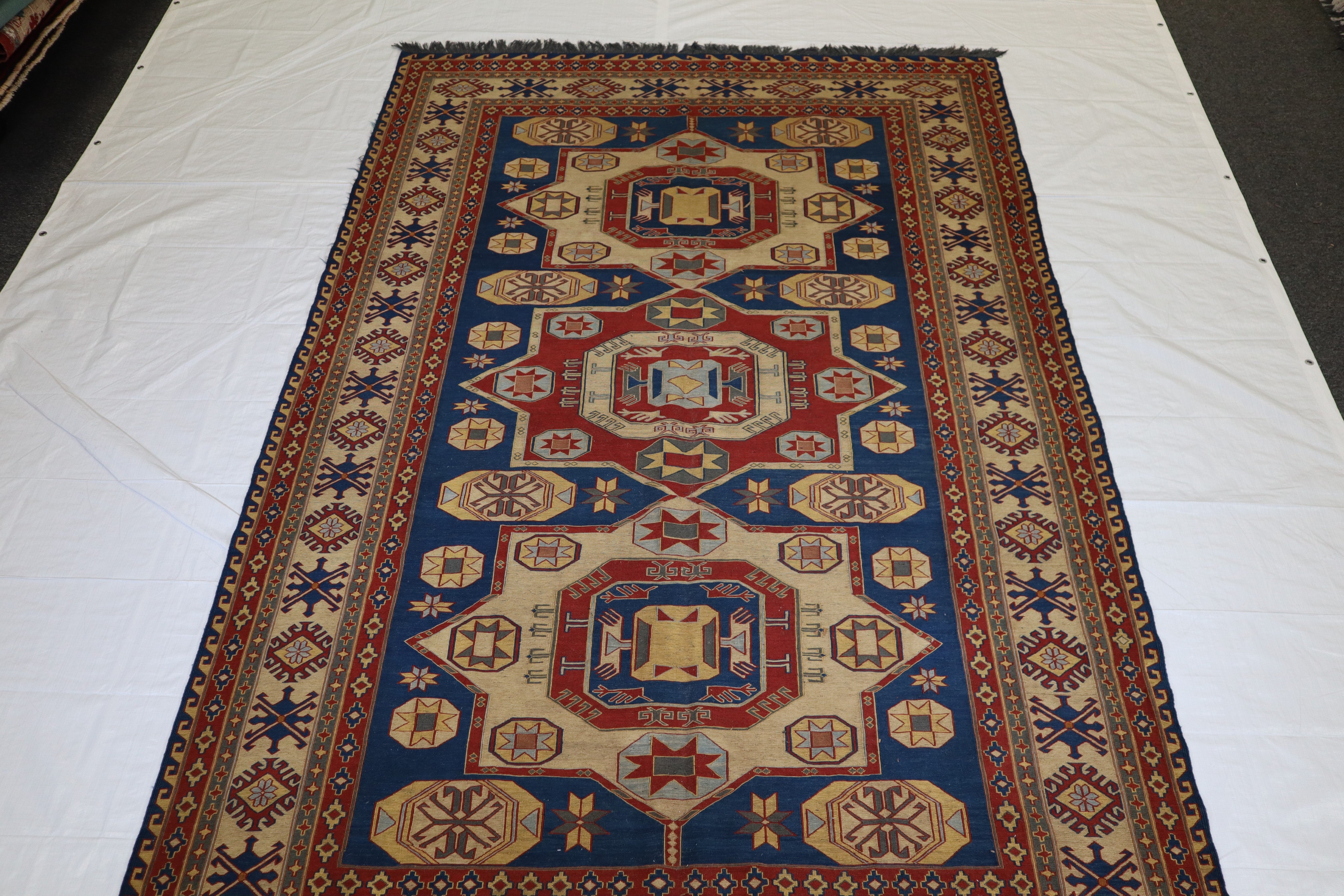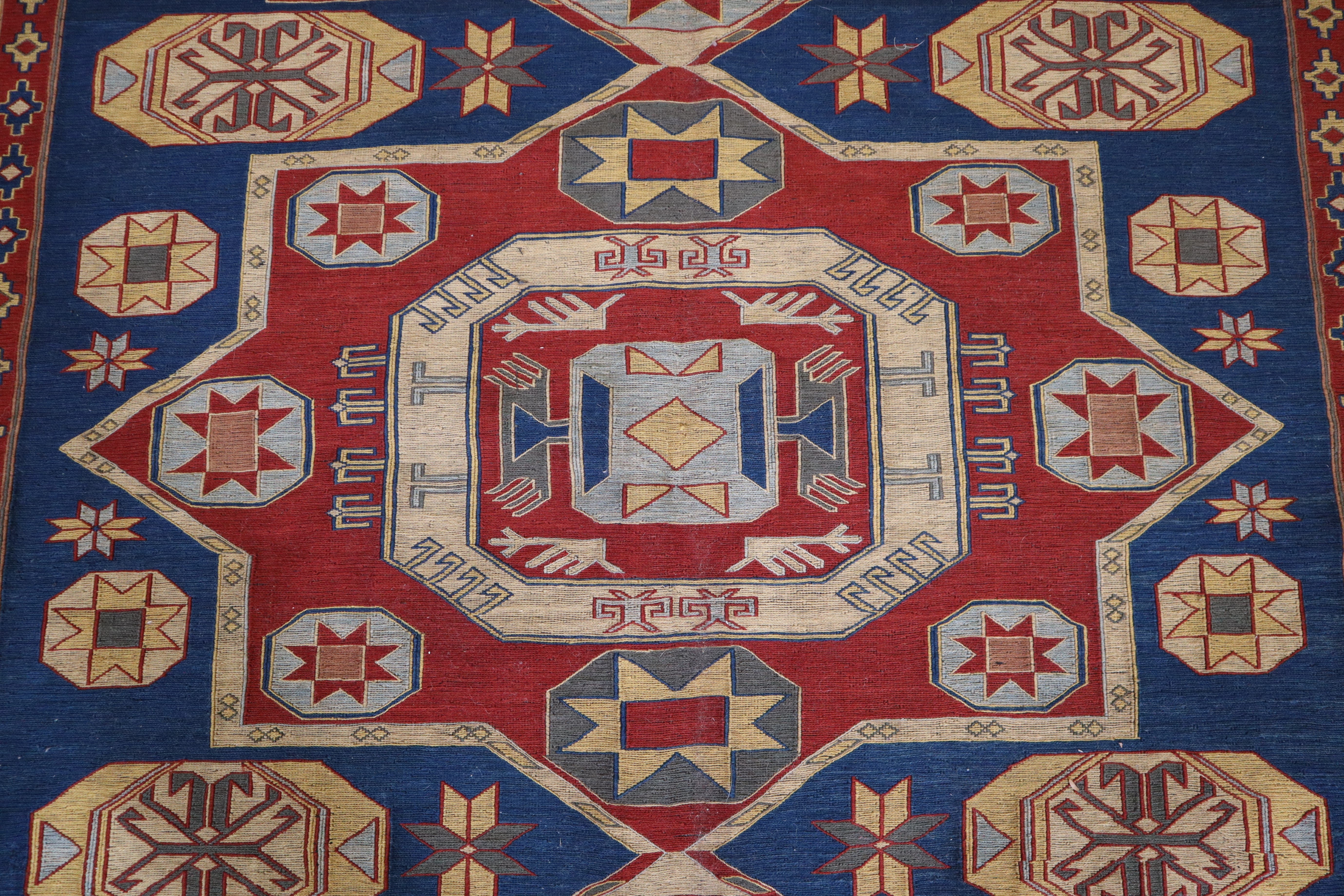 This rug is in an excellent condition. Nice colors and patterning. Very natural wool and super colors.