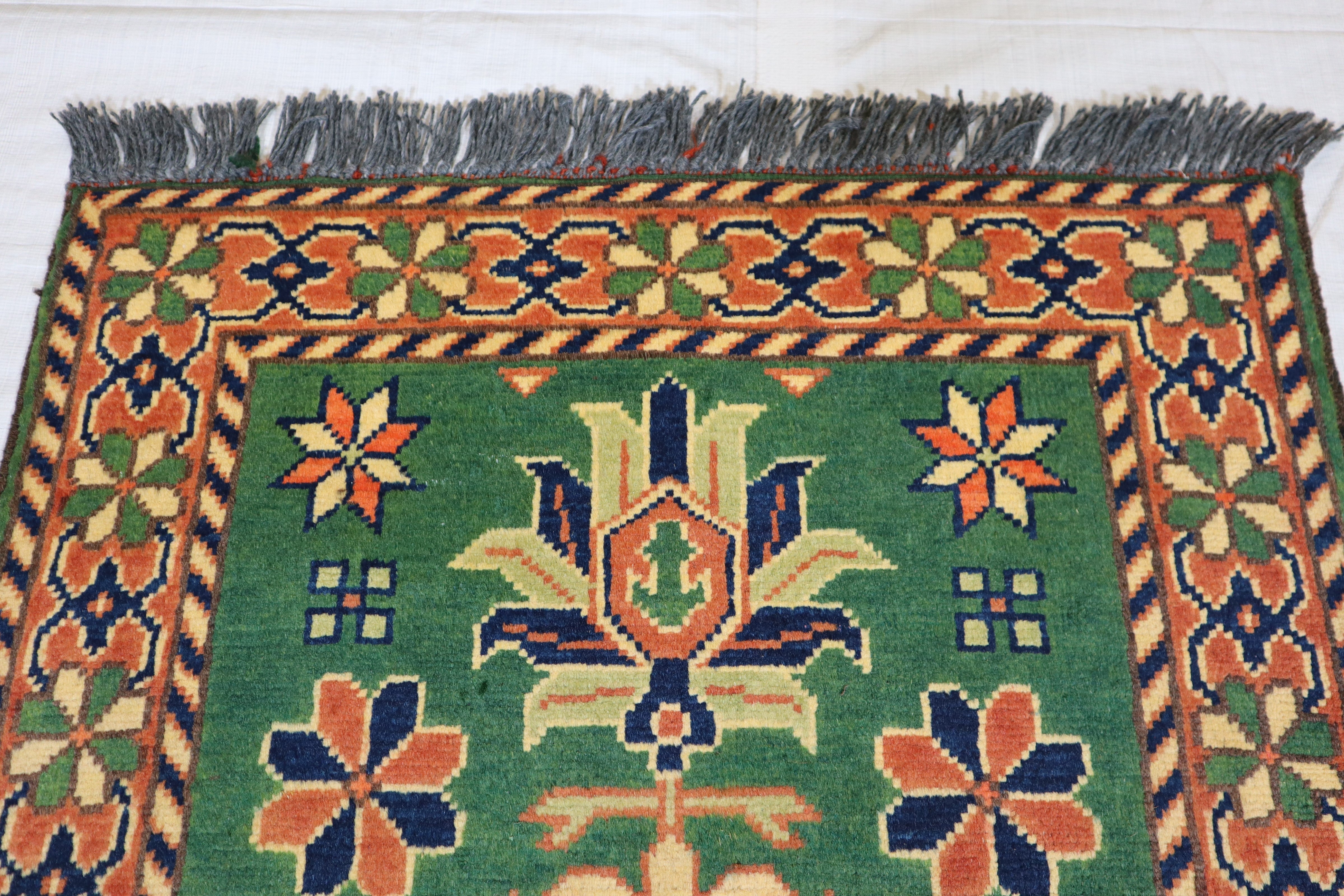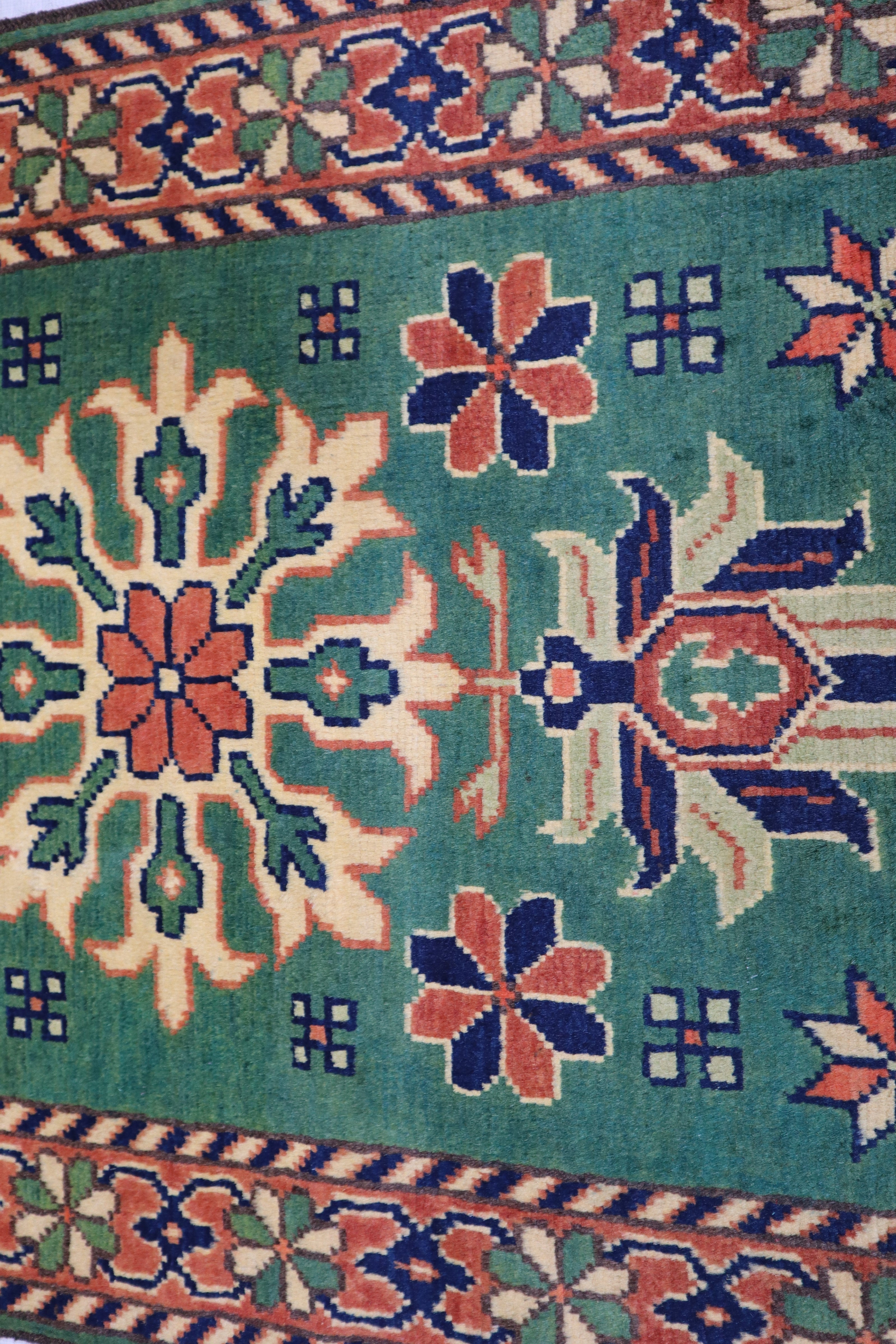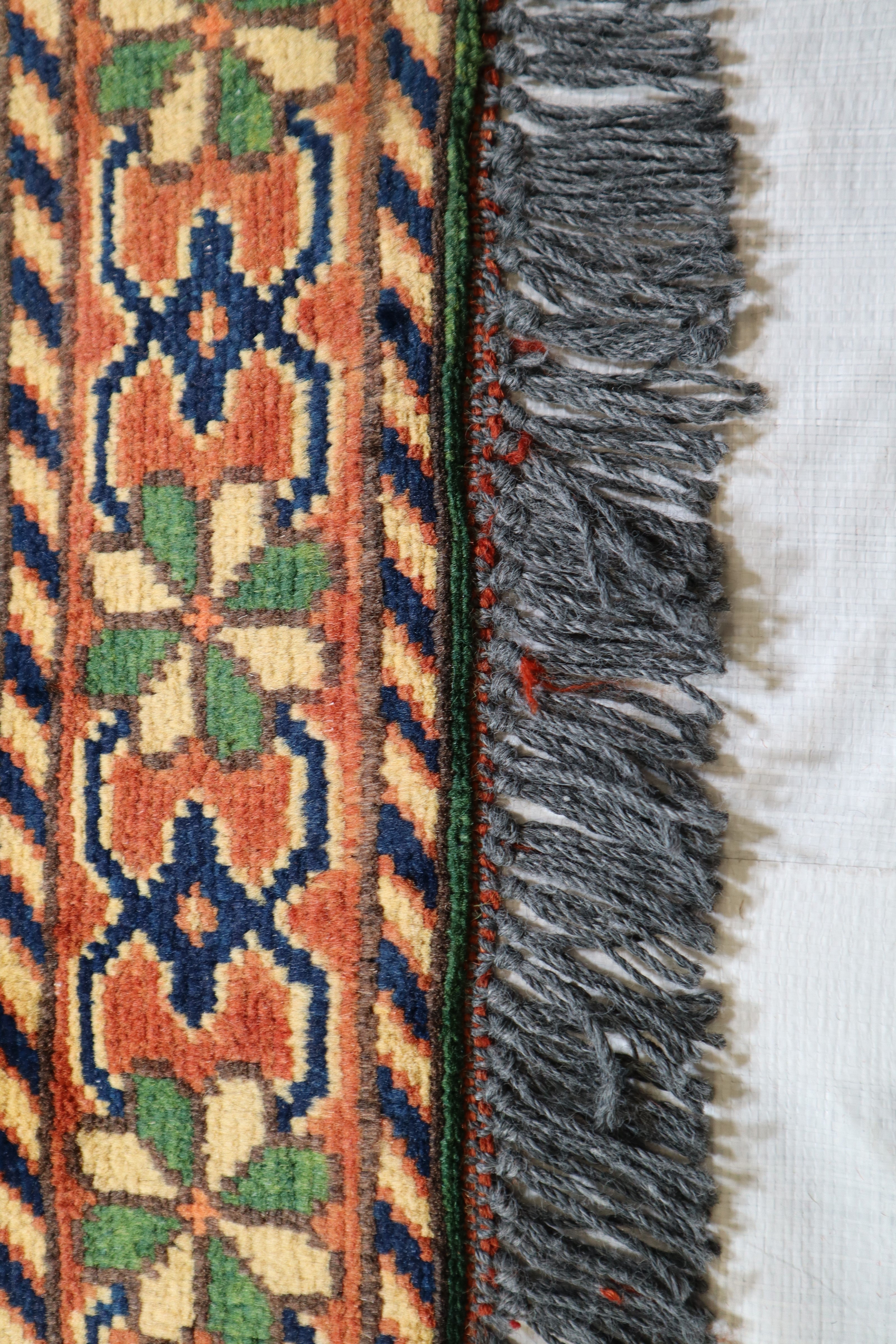 This rug is in excellent condition. Nice colors and patterning. Very natural wool and super colors.