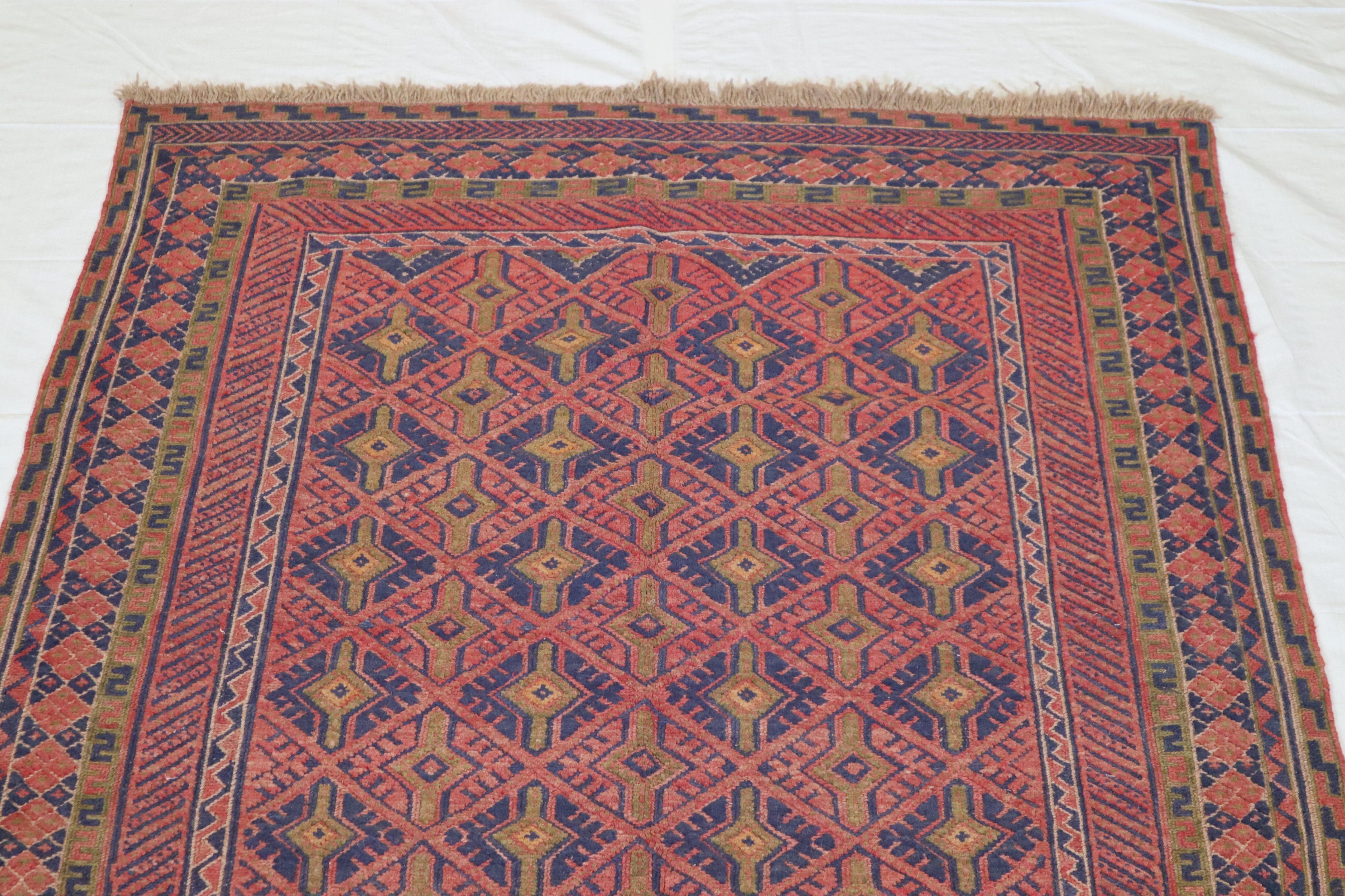 This rug is in excellent condition. Nice colors and patterning. Very natural wool and super colors.