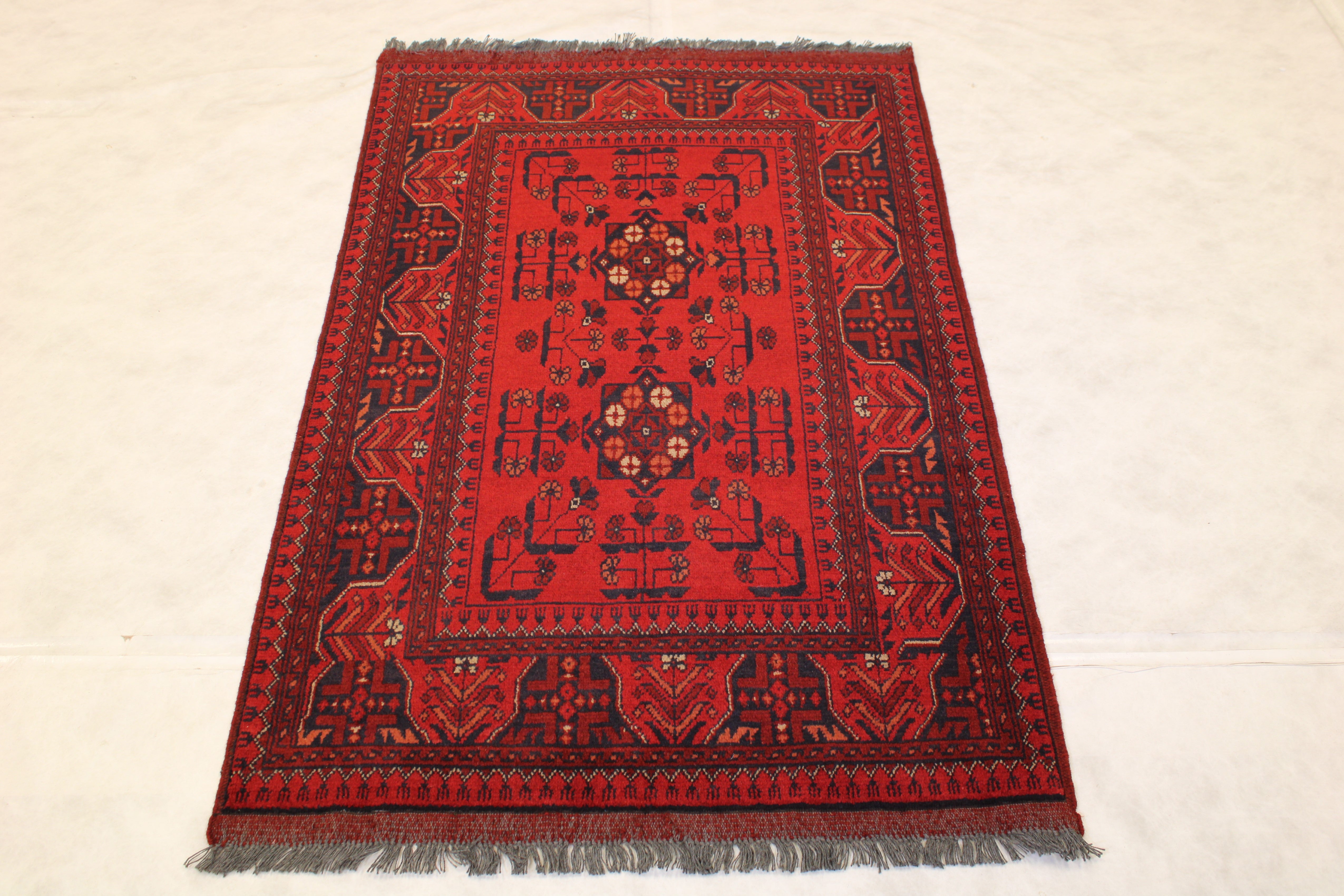 This beautiful Hand-knotted Khal Mohammadi rug is made with 100% lambs wool.