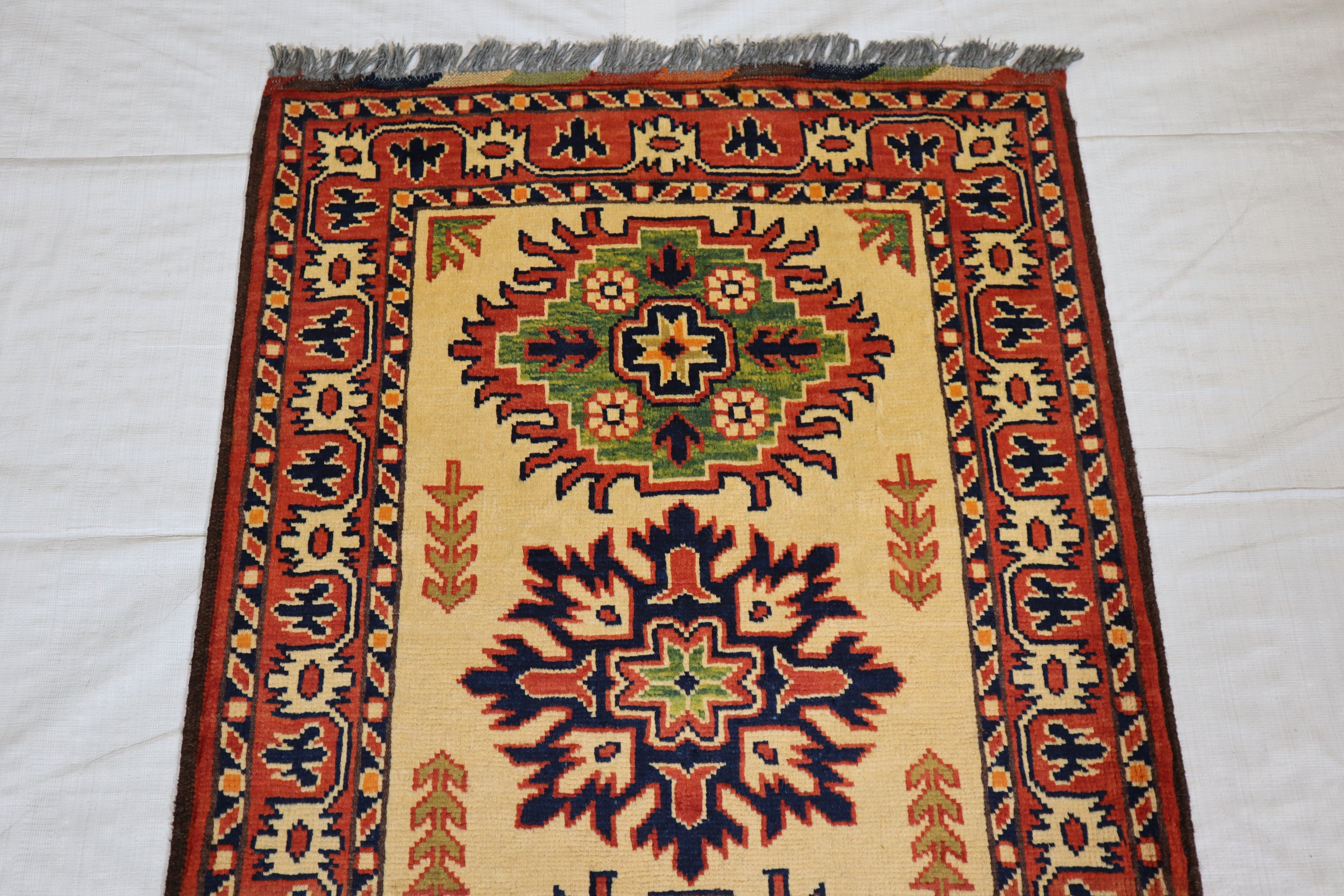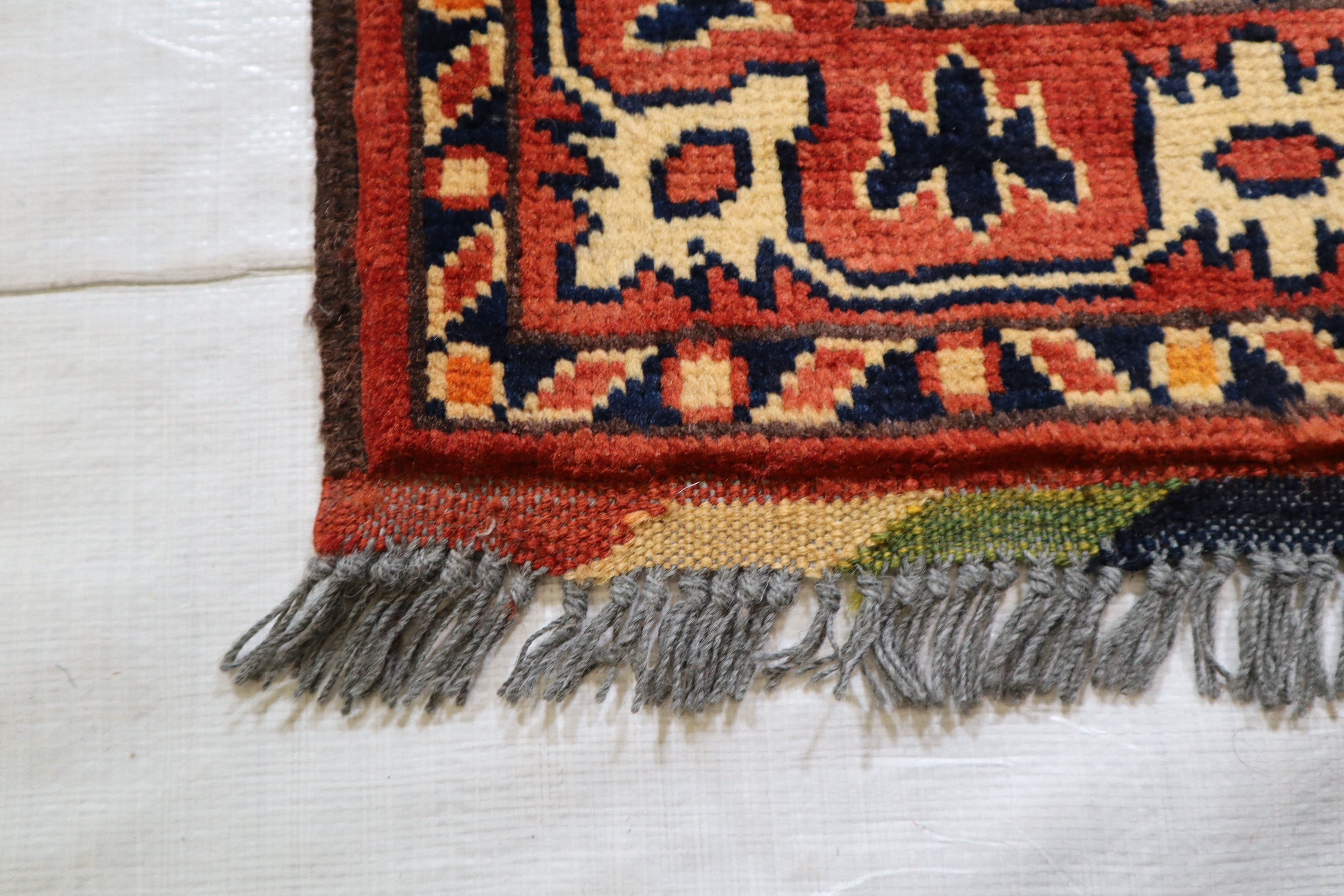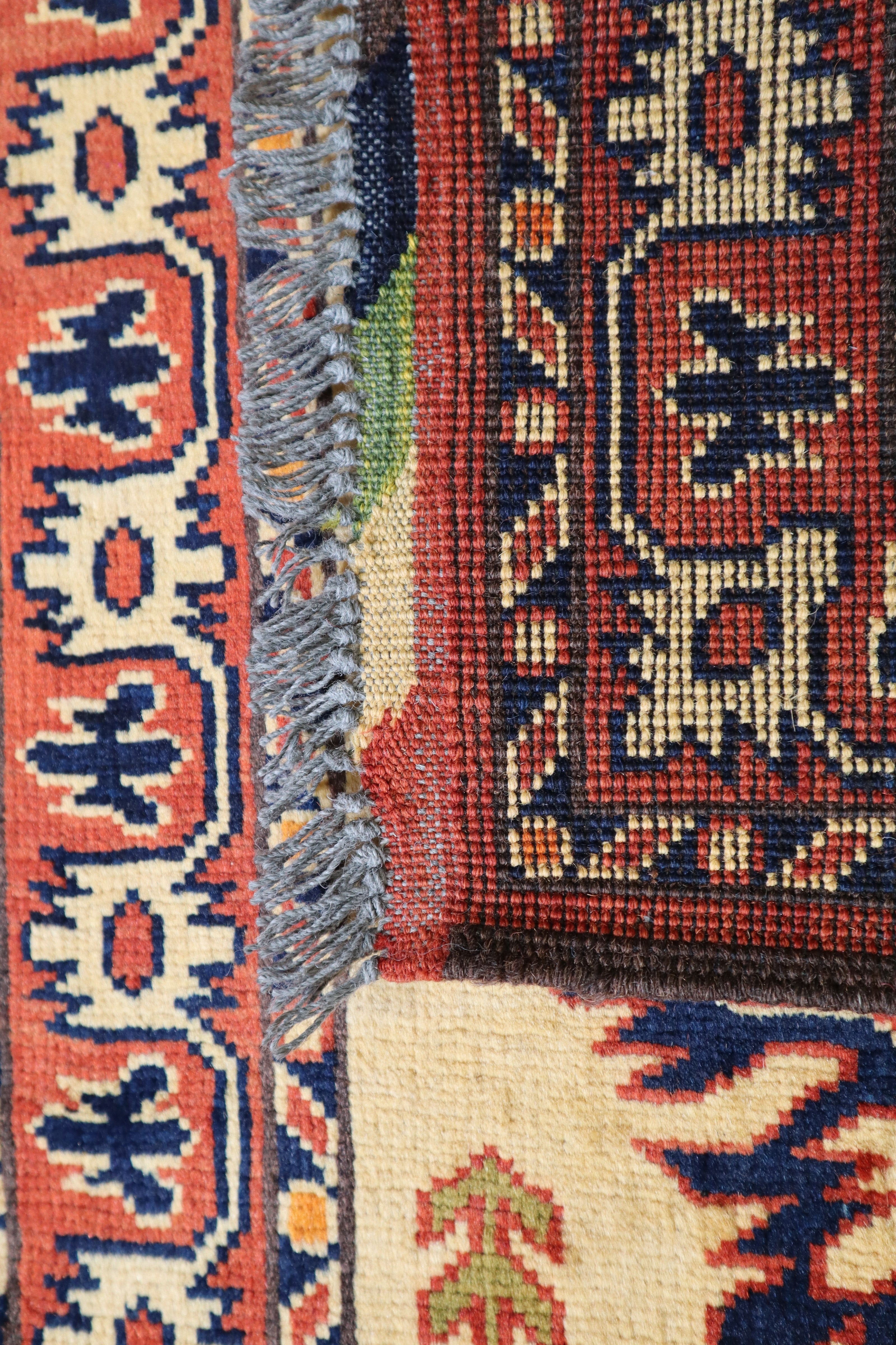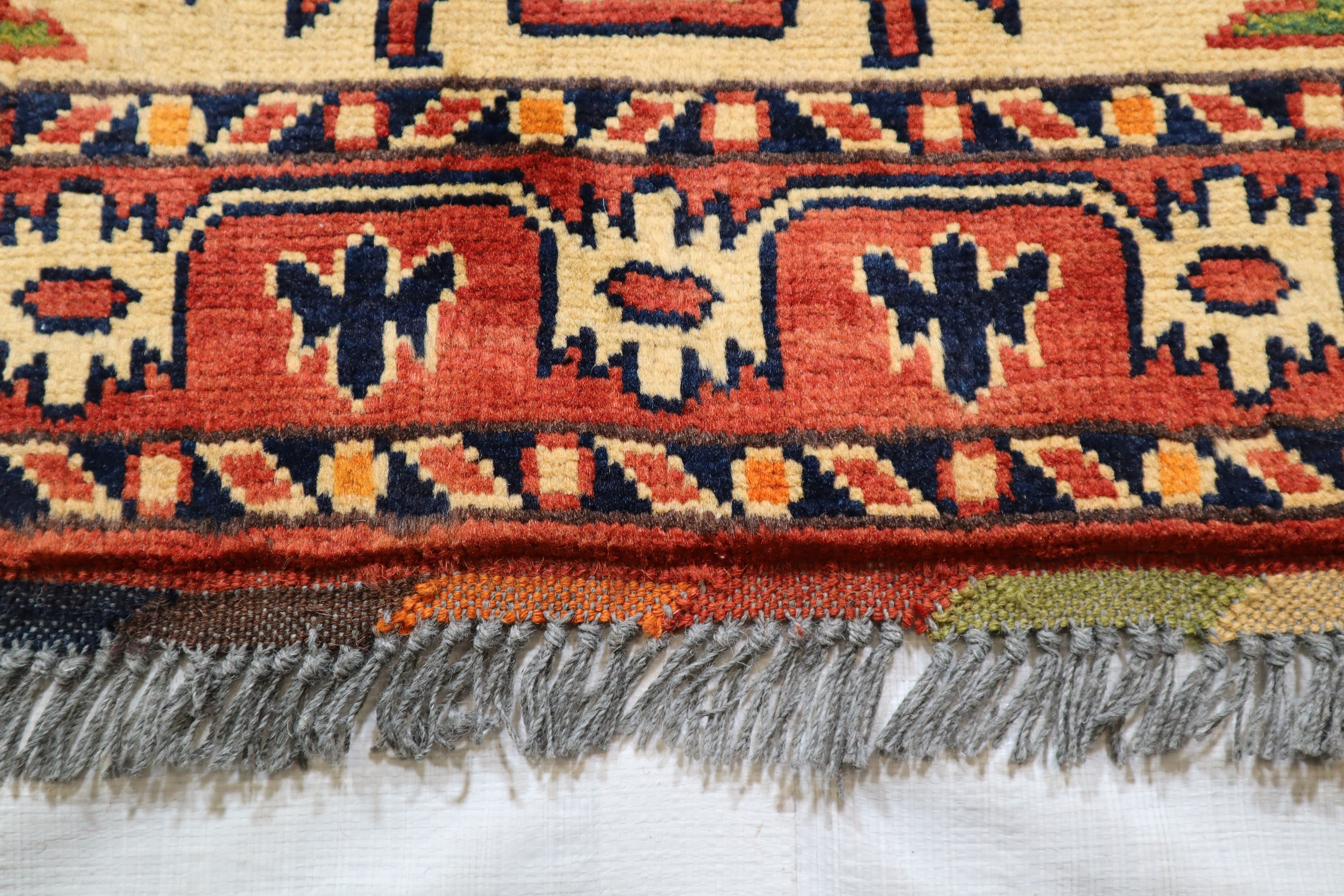 This rug is in excellent condition. Nice colors and patterning. Very natural wool and super colors.