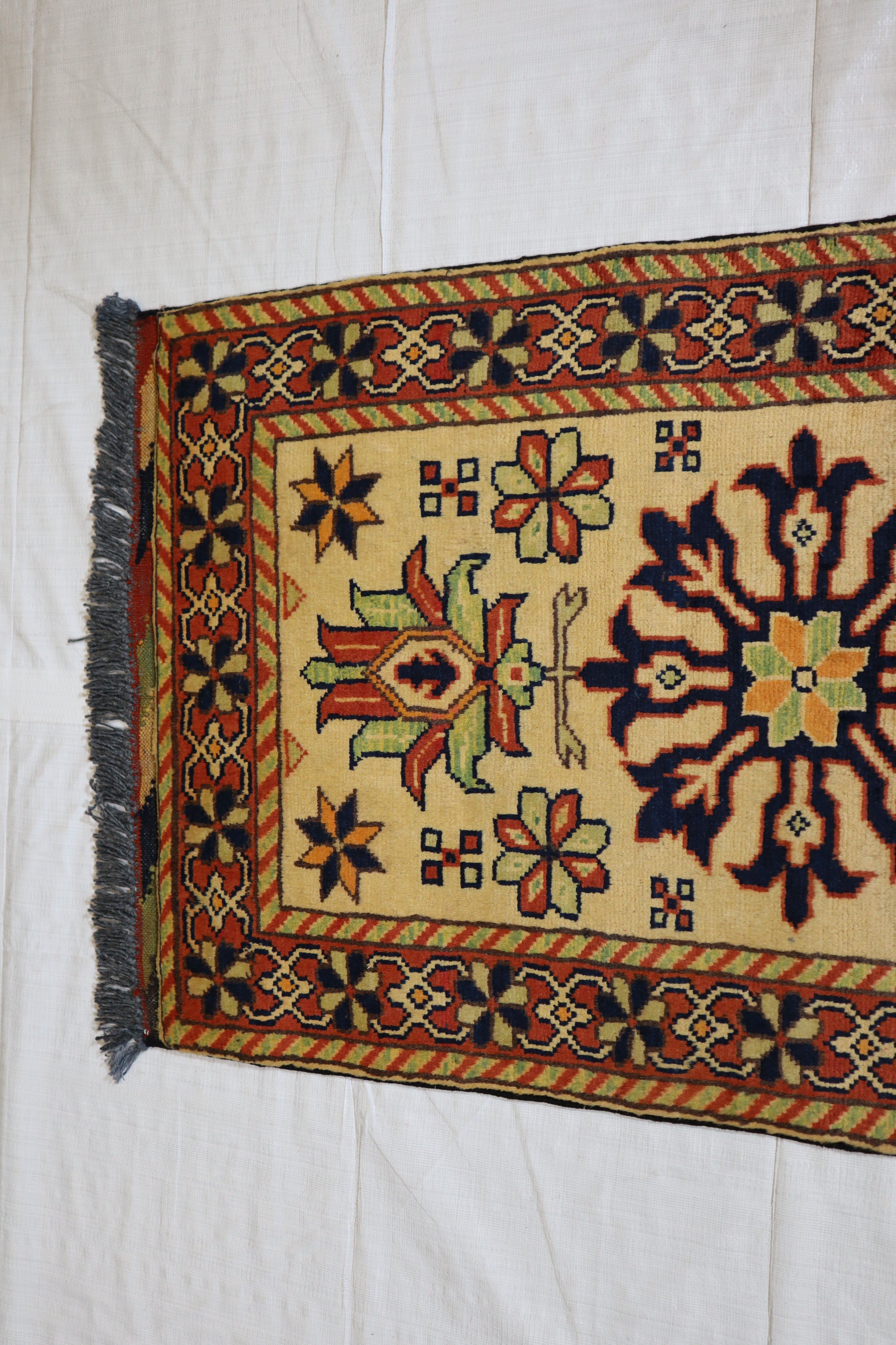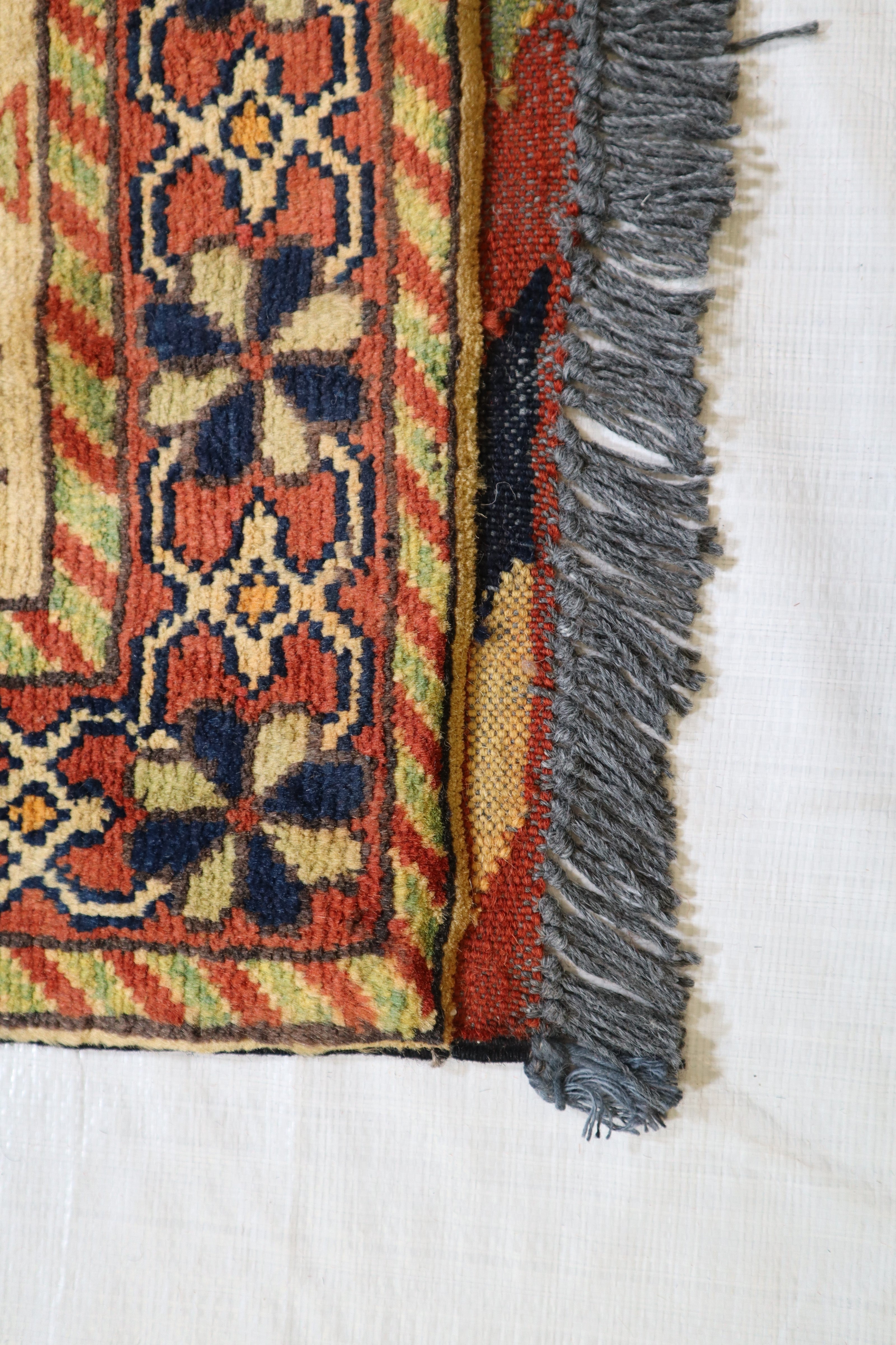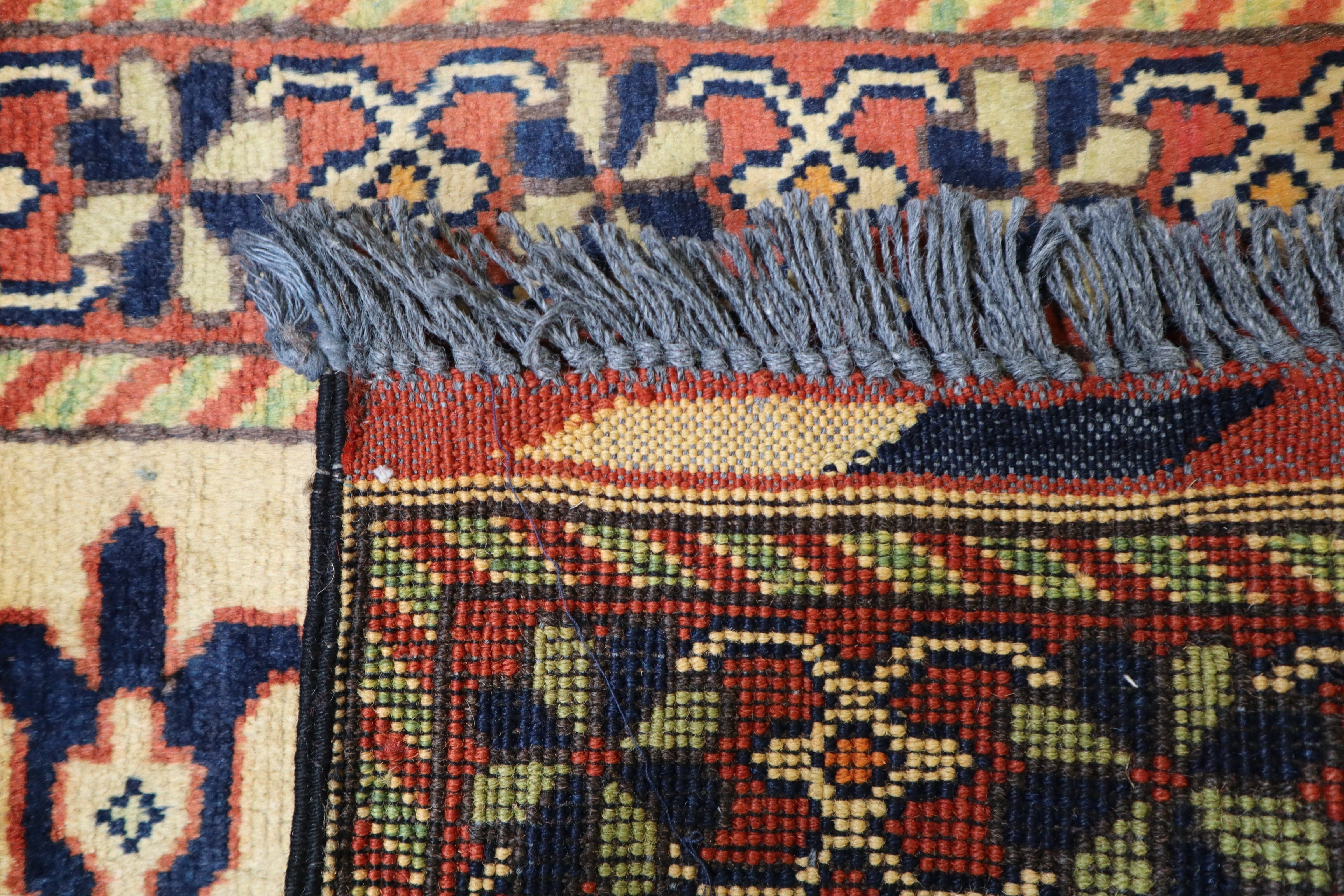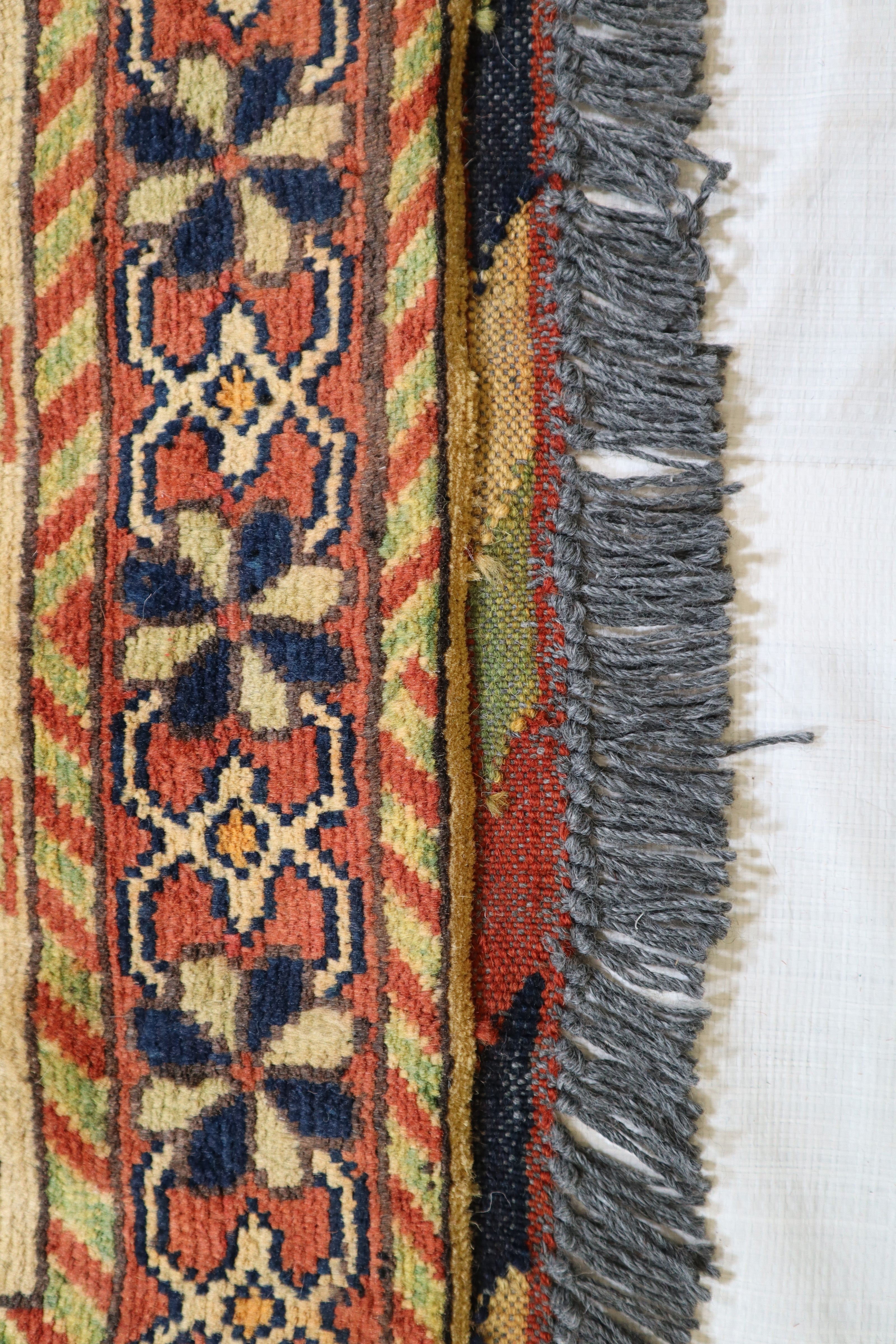 This rug is in excellent condition. Nice colors and patterning. Very natural wool and super colors.